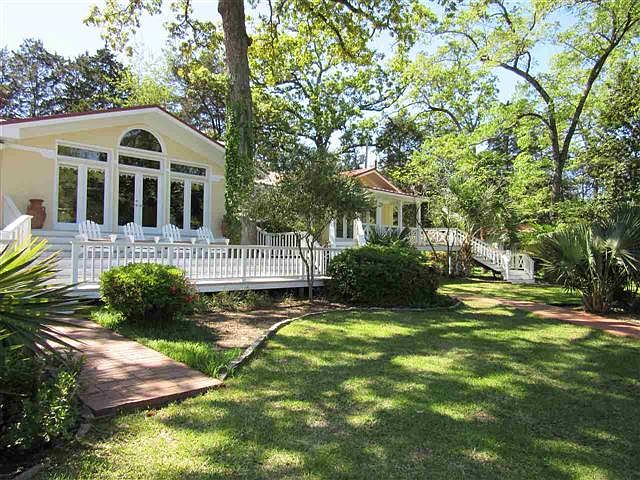 This gated in-town oasis is in a parklike wonderland of azaleas, camellias, etc.-perfect for both outdoor and indoor entertaining. The home has extensive porches and decks, a salt-water pool, hot tub, pergolas, and a stocked acre lake. There's a sienna-colored raised-seam tin roof and an additional 2-room potting shed perfect for painting, crafting, etc. The kitchen features seamless stainless-steel countertops, 2 dishwashers, banquette style breakfast room, double ovens and warmer and 6-bu...