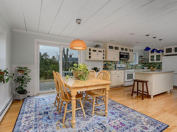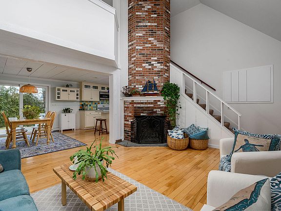 Bright and cheery describes this charming salt box home! The airy living room with soaring ceilings is open to the dining area and renovated kitchen--perfect for entertaining! The kitchen is a cook's dream with a gas range, huge island and lots of counter space (Quartz) and cabinet storage! The wood-burning fireplace in the LR has a dramatic floor to ceiling chimney, great for making chilly nights cozy. Beautiful light birch wood floors throughout with tile in the bathrooms. The 2nd and 3rd BRs are upstairs, where the 3rd BR is currently a loft with a slider to a sweet Juliette balcony overlooking the backyard. Practical features include gas hot water heat, a 1st flr BR, 2 renovated bathrooms, a garage, breezeway, and a spacious deck. Septic passed. Taylor-Bray Farm and conservation lands are nearby on the north side of this neighborhood with views of the salt marsh and Cape Cod Bay beyond. So fun to visit spring lambs at the farm! Gray's Beach and the boardwalk into the salt marsh are also close by. Historic charm and spectacular natural beauty make Yarmouth Port desirable for year-round living, a weekend retreat, or investment. Buyers/agents to confirm details. Please see video!
