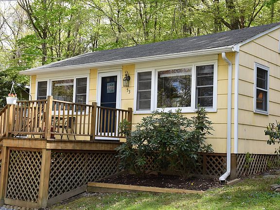 Bring your swim trunks and fishing poles, a just renovated wonderful two bedroom one bath cottage on Bashan Lake with water access private beach and dock. New custom cabinets, stove and flooring inside, with a great wrap around deck with conservation land behind the house for privacy outside, a new septic tank was installed in 2013. In addition a 16 foot boat with a 25 hp outboard motor is to transfer with the sale of the property .