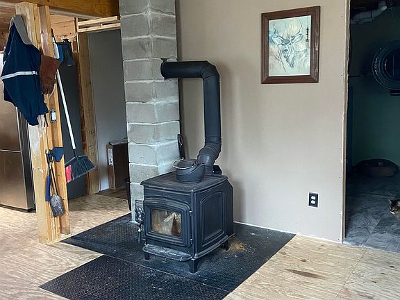 This newly updated cabin, in the White Mountains of the Presidential Range. 1400+ sf, 2 bedroom, 2 bath cabin on 3.5 acres at the end of a dead end road. 24x12 foot paver patio. Mt views. Rock fire ring. Large fenced backyard. Newer State approved 3 bedroom septic system, low-maintenance vinyl siding, metal roof, EPDM roofing, and aluminum wrapped facia. Concrete block foundation and sono tubes. Interior has hardwood, laminate and vinyl flooring. The interior has combination of sheet rock and knotty pine walls/ceilings. Ceiling fans throughout. Live-edge sills. Kitchen has solid maple hardwood cabinets, granite countertops and newer appliances. 800GPD Reverse Osmosis water filtration system and a whole house water filtration system. Extra large walk-in pantry with chest freezer. Jotul wood stove and 2 60,000BTU direct vent propane wall heaters. Utility room with electric hot water heater, water pump, and full-size stackable washer/dryer, utility sink. Dug well.