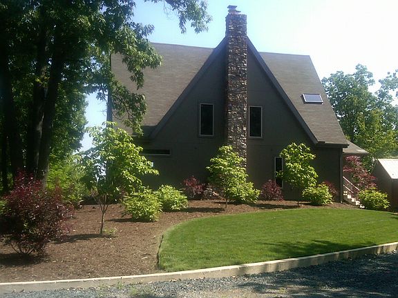 Like-new contemporary. Add'l 800 sq. ft. finished in walk out to patio. Best setting - 2 1/4 partially wooded A, sweeping 50 mile views. Amenities and creative design. Open floorplan, HW floors, walls of windows thruout. Master suite w/sitting room, office. New baths, all appls., fp. in FR. Energy efficient w/supplemental solar and exterior wood boiler. 2,000 sq. ft. of view filled decking with huge sunken firepit. 2+ car garage. Stunning hardie board panel exterior finish.