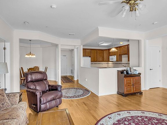 Welcome to Wellington Crossing! Spectacular 55+ community offering a club house, in ground pool, tennis courts and exercise room. Conveniently located in North Waltham with easy access to highway. An open floor plan condo with natural light, tall ceilings, crown molding, a private balcony, and a large walk-in closet presents a highly desirable and functional living space. The open layout ensures a seamless flow between the kitchen, dining, and living areas, enhanced by the airy feeling of tall ceilings and bright natural light. Elegant crown molding adds a touch of sophistication. The private balcony offers an exclusive outdoor retreat with beautiful west facing view, while the large walk-in closet provides ample storage space and organizational convenience, making the condo both stylish and practical. Elevator from heated garage included!