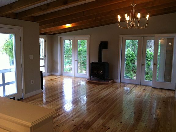 Picturesque home on 1.8 lovely acres, on quiet road, in North Yarmouth. Home offers three bedrooms and two full baths, large open concept first floor, great layout, tons of natural light, beautiful hardwood floors, fireplaces, exposed beams, loads of storage, multiple heating zones, heated floors and more! First floor is a bright open concept living space and includes the living room, dining room, study (or office), kitchen and family room. Study has a wood-burning fireplace, built in bookcases, and picture window. Kitchen is updated, has custom made hardwood cabinets, radiant floors, tile backsplash and efficient design. Family room has French doors that open onto the large back patio, a propane-fireplace, exposed beams and so many windows it feels like you are outside! There is also a tiled mudroom and attached one car garage. Beautifully newly refinished hardwood floors throughout! Second floor has three bedrooms, cathedral ceilings, skylights, tons of closets, and unique loft space. Neutral carpets have been freshly cleaned. Exterior is gray cedar shingle with bright white trim. Mature oak trees dot the property, there is tons of yard space, beautiful landscaping and a large exterior back deck to better enjoy the outdoors. Neighborhood Description Great school system