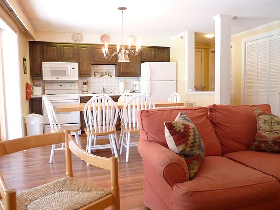 This lovely, trailside condominium is nicely updated and appointed. A combination Living/dining and kitchen feature a beautiful, stone wood-burning fireplace and two new sliders to the more private, wooded backyard. There are 3 bedrooms, including a master with a private, adjoining bathroom as well as additional, full hall bath. Recent improvements include newer kitchen appliances, carpet, tile and laminate wood floors throughout and all windows were just replaced. The Birches are a complex of five, multi-unit buildings in Bromley Village. In the winter months , they offer ski-in/ski-out convenience. They are also a short walk to the Clubhouse w/ fitness center and are serviced by the Village Shuttle bus.