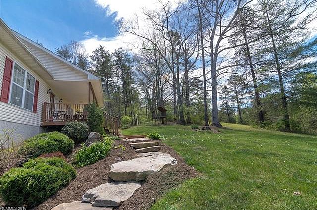 Peaceful country setting with rolling pasture and long range mountain views AND only 15 minutes to downtown Asheville. Private and surrounded by beautiful landscaping. Outdoor space with covered rocking chair front porch and open back decks. Upper level has master bedroom & bath, 2BR and full bath, kitchen, dining area, living room. Lower level daylight basement has 9 ft ceilings, den with fireplace, bonus room, full bath, 2 car garage, laundry room and walkout patio.