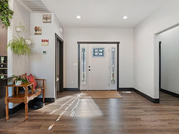 This stunning 3-bedroom, 2-bathroom custom home, built in 2022, offers modern luxury and comfort. Featuring an open layout with vaulted ceilings, recessed lighting, and a floor-to-ceiling stone propane fireplace, the living space is both inviting and bright with a wall of windows. The kitchen boasts stainless steel appliances, quartz countertops, gorgeous Huntwood cabinets, and a walk-in pantry. The spacious master en-suite includes a walk-in closet and a luxurious bathroom with double vanity sinks, a custom tile shower, and a deep soaking tub. Each bedroom is thoughtfully designed with built-in closet shelving. Enjoy outdoor living on the private covered deck or in the large backyard, perfect for BBQs and bonfires. The 3-car attached garage is fully insulated and heated, providing year-round comfort and practicality. Located minutes from town and close to mountains, rivers, and lakes, this home is ideal for outdoor enthusiasts seeking adventure and tranquility alike.
