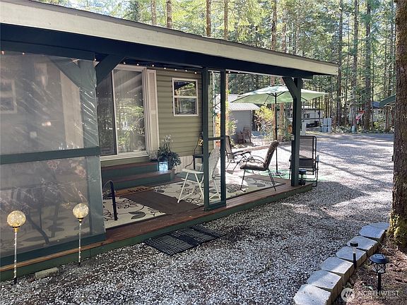 A great opportunity at The Glen at Maple Falls! This '08 Breckenridge Park Model is in great condition. The lot is nice and level, graveled, and awaiting you and your ideas! Has a covered porch to keep you dry if it's raining. Shed in front in great condition. Fire pit area in back. The lot gets plenty of sun. Primary bedroom in back and has hide-a-bed in front w/privacy curtain for guests. Almost everything stays! The Glen has 2 pools, hot tub, sauna, 2 clubhouses, family center, library, tennis courts, laundry facilities, river access, playgrounds, trails, 24/7 security w/ gated entrance, and so much more! Located minutes from Mt. Baker. The Glen is zoned rec for 120 days use per year.