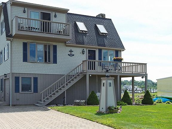 Spectacular 360 degree views of Weekapaug Breachway, beaches and Winnapaug Pond and Weekapaug Land Trust. Rare offering for this waterfront home with a superior 50 year registered dock with lift, water and electricity can accommodate up to 4 boats. Filet Table! Ready for your catch. **** This open floor plan Gambrel offers 3 bedrooms and 2 ?? baths. Birch cabinets in kitchen with double ovens and hardwood floors. The beach stone fireplace adds to the ambiance of any season. Wraparound and cantilever decks to enjoy nature at its best. *** Breach Drive is a cul de sac with private beach rights including Misquamicut Fire District Beaches. *** Property's entrance greets you with brick pavers and underground utilities. *** 200 amps service, 4 year old Hydro Air 3-zone furnace, central air, underground sprinklers system. Whole house generator is included. Central vacuum and alarm system. *** Best summer activities can include boating to the ocean or Winnapaug pond. Kayaking, jet skiing and paddle boating, fishing or quohoging right from your own yard. This home is beautiful and peaceful. Sunrises and sunsets!! Beautiful year round or vacation home to love.