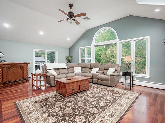 Well-loved and maintained 5-bedroom Colonial on 3+ acres, offering a sprawling cleared yard as well as a large, wooded area providing a natural border and privacy! The main floor features an open floor plan with gorgeous kitchen open to dramatic cathedral ceiling'd family room with gleaming hardwood floors ideal for entertaining and large gatherings. The kitchen is impressive: custom cabinetry, stunning granite counters, double convection ovens and more overlooking the beautifully landscaped yard. The dark hardwood floors continue into the dining and living room with gas stove. A full bath completes this level. The 2nd floor features 3 large bedrooms including a Primary Bedroom with walk-in closet. A luxurious full bath with jetted tub and separate shower service the bedrooms. The walk-up attic leads to 2 bedrooms. The yard is an oasis. Lovely patio leads to heated in-ground pool, gas grill and fire pit, room for lawn games, gardens. Be home for the holidays!
