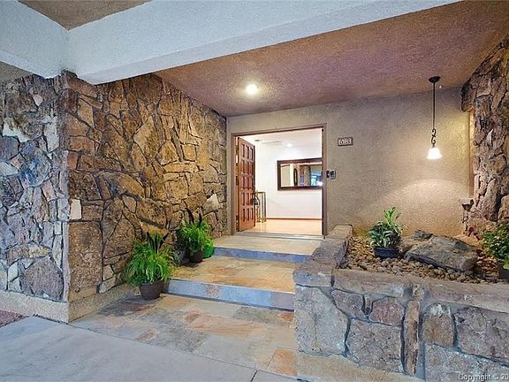 Dramatic Portico Entry Graces This Renovated Stucco Rancher w/Tile Roof~Circular Drive ~Spacious LR w/Moss Rock FP~DR Opens to Expansive Gourmet Island Kitchen with New Granite Counters~Tiled Sunroom off Large Wood Deck~Large Rms Thruout~ML MBR w/Walkin Closet & 5PC Bath~Extra ML BR w/Huge Closet & Full Bath~Walk-Out Bsmt has 2 Rec Rms, Moss Rock FP, Wet Bar, Laundry, 2BRs, Office, Updated Bath~Serene Fenced Lot~Water Feature, Paver Patio w/Built-In Rock Grill~A/C, Central Vac, Solar, 2 Sheds, Garage w/Great Cabinets. Tastefully renovated home is School District 12. Oak floors thru entry & kitchen. Large LR w/wood burning moss rock FP. Spacious DR. Sun Room off kitchen w/tile floor, wood tongue/groove walls & ceiling. Walk-out from sunroom to large back deck. Island kitchen w/quality cabinets & stunning granite counters, double ovens, Jenn Air downdraft range, dishwasher, side by side refrigerator & trash compactor. ML MBR w/walk-in closet & built-ins. Updated MBath boasts a dual sink vanity, granite counters, jetted tub & enclosed walk-in shower w/built-in seat. Addtl ML BR w/large windows & walk-in closet w/built ins adjoins hall bath w/tile floor, single sink vanity, granite counters, pendant lights & tiled tub/shower. Dramatic circular stairway to Bsmt. 2 Rec Rms w/wood burning moss rock FP & granite wet bar w/cabinets, shelving, & sink. Pool table. Laundry Rm has cabinets & electric hook-ups. There is an office, 2 BRs & full Bath w/dual sink vanity, granite counters & glass enclosure tub/shower. Large private yard w/mature trees/shrubs. Lots of outdoor living w/stamped concrete walk, covered & open patios & deck. Built-in moss rock charcoal grill. Solar panels assist hot water baseboard heat. Central Air. Finished oversized garage w/built-in cabinets. Listing Agent: Vicki D. Company: RE/MAX Properties, Inc. Phone: 719-440-0514 Email: vicki@makeyourbestmove.com