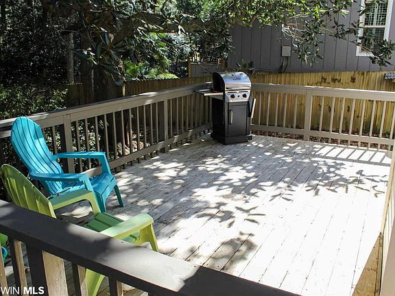 Cute home just a short walk to downtown Fairhope! This 2 bedroom home has hardwood floors in the living room along with a wood-burning fireplace. The eat-in kitchen overlooks a fenced back yard with a huge deck! The upstairs feature a giant Master bedroom has his & her closets and shares a remodeled Jack & Jill bathroom with the 2nd bedroom, but each has private vanity areas.