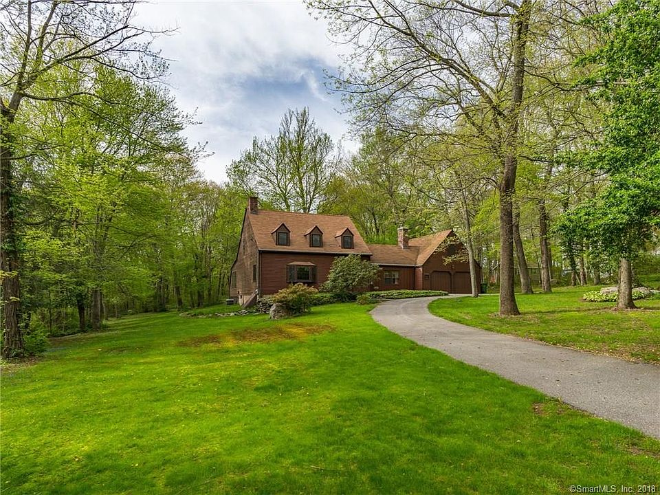 Welcome home to this warm and inviting cape sitting on a beautifully landscaped and private one acre lot. Formal living room with bay window and large brick fireplace. Formal dining room opens up to the living ant the kitchen and also has french doors leading to the spacious sun room. Remodeled eat in kitchen with stainless steel appliances and granite counter tops. The family room has so much character between the wood, cathedral ceilings, the stone fireplace and hardwood floors. Also on the main floor you will have the laundry area and a half bathroom. Master bedroom suite with its own full master bathroom and spacious closet. 2 more bedrooms on the second floor and one full bathroom. Beautiful and private back yard. Circular driveway and 2 car garage.