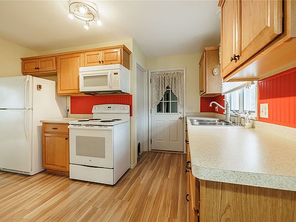 Welcome to this charming ranch in a desirable, low-traffic Henrietta neighborhood! Perfectly situated on a spacious corner lot, this home offers over 1,000 sq ft of single-floor living with easy access to the NYS Thruway, Wegmans, Mendon, Henrietta, and more. A welcoming front porch with walkway, fantastic curb appeal, low-maintenance vinyl siding, and a 2-car garage with dual driveways and double-sided access set the stage. Step inside to the open-concept layout, where the bright living room flows seamlessly into the formal dining space and continues into the updated eat-in kitchen with newer cabinets/counters, updated flooring, some new appliances, and plenty of storage. Three comfortable bedrooms and a full bath with a newer vanity and shower complete the main floor. Don’t miss the finished basement—perfect for extra living space, a home office, or rec room. Whole-house generator included for peace of mind. This home truly offers comfort, convenience, and value in a sought-after location! Other upgrades include: Replacement windows, glass block windows, roof 2008, gutters and downspouts 2015. Negotiations begin Tuesday, September 30th at 12:00pm.