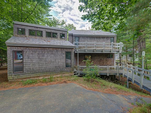 Nestled in the serene coastal town of Ogunquit, Maine, this unique property at 53 Cedar Lane offers a rare opportunity to own a piece of New England charm. Situated just moments away from the renowned Ogunquit Beach and the quaint village center, this home is a blend of mid century modern and maine cottage and has been loved by the same family since it was built. It is now seeking its next owners to make their own Ogunquit memories. Enjoy the vaulted ceilings in the main living space with pine wood paneling, a ceramic wood burning, free standing, fireplace and slider to the screened in porch overlooking the recently cleared back yard. The whimsical kitchen offers sunny yellow counters and a functional work flow with ample cabinets. The hallway to the first floor primary suite features your laundry area and storage. The primary suite has large windows, vaulted ceiling, private full bath and its own entrance. There is a separate bath near the front door that is perfect for leaving the sand from your beach excursions behind. The second floor features 2 bedrooms with their own loft areas as well as another half bath. This is a home that is built with family getaways in mind. While the home is insulated and has a heating source, the water line is superficial and currently prevents it being used in the winter. Survey and new septic design recently completed. Don't miss out call today to arrange your private preview.