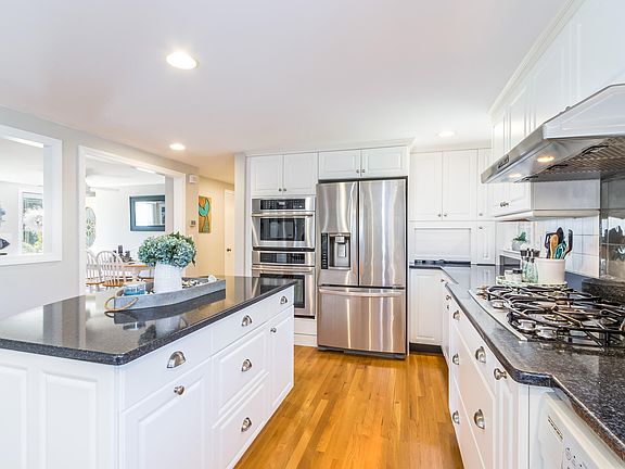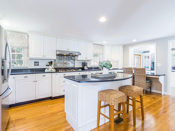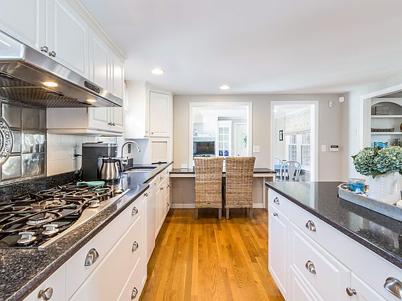 Enjoy the Cape from the wonderful town of Dennis! Beaches galore and two town golf courses, it's where everyone wants to be! 53 Charing Cross is conveniently located close to Patriots Square Plaza, specialty grocer Ring Bros, and Johnny Kelley Park. ''House Beautiful'' is the best way to describe this property! Offering gleaming hardwood flooring throughout, a renovated cook's kitchen with stainless steel appliances, granite counters and a large island with seating. The breezeway room with built-in custom cabinetry, beverage refrigerator and bistro dining area is a delight! The huge composite deck is the perfect spot for entertaining after rinsing off in the outdoor shower. Other features include a first floor primary bedroom with half bath, first floor guest bedroom, central AC, and a dining / living room with gas fireplace. The first floor main bathroom has been fully renovated w/ a new vanity and quartz countertops, beadboard, mosaic tile floor and walk in shower. The recently renovated second floor includes 2 generous bedrooms w/ recessed lighting, ceiling fans, new shiplap walls and carpeting AND a renovated bath with new tile floors and quartz counters. Your new home awaits!