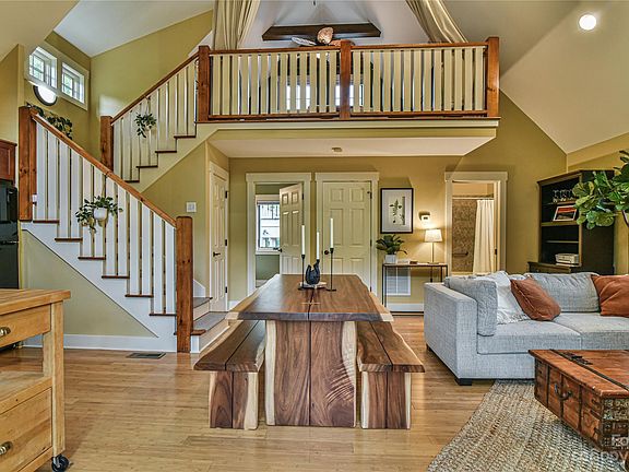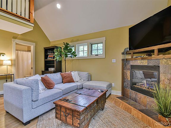 This Black Mountain cottage sleeps four, with cozy bedroom plus spacious sleeping loft. A unique opportunity for cottage and oversized lot, one of only a few in Cheshire, less than a mile from I-40. Conservatively priced, placing a value of $475K for cottage, and $250K for lot (recent similar sales). Open floor plan with vaulted ceiling allows a flood of natural light. Cottage is a wonderful full-time or vacation home, or could be a rental, or even a guest home after you build a main house on the lot. This is one of the largest lots in Cheshire, a walking neighborhood community designed by the internationally-known architects Duany Plater-Zyberk. Cheshire is a mix of larger homes, smaller "treehouse" homes, plus cabins and premium townhomes. There are walking trails throughout, large park, playground, stream, plus business center with popular restaurants. Walk down for lunch or dinner, or to enjoy a morning coffee. Community also has Fitness center, Tennis, Pickleball and a dog park.