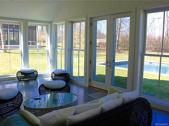 Country Chic Contemporary. Custom designed and meticulously expanded. This amazing home has an open concept Kitchen/dining/great room with radiant heated concrete floors. The ultimate entertaining spaces can be found throughout the home inside and out! Chef's kitchen boasts white calcutta gold marble counters, large island with seating, white oak cabinetry, sub-zero, Gaggenau gas cooktop, Miele wall oven/microwave, wok burner, two dishwashers, beverage refrigerator, ice maker and Miele coffee/cappuccino machine. Large single pane french doors open to large blue stone patios. Heated gunite salt water pool with blue stone surround and inviting pool house with six foot gas fireplace. Beautifully set on 3.3 private park like level acres with mature landscaping, stone walls and gardens. Two Master Bedroom Suites on Main level. Two limestone and one bronze surround fireplaces. Walkout lower level playroom with wall of glass doors. Detached three car garage with storage above and attached pool house. Built-in audio/security system throughout home and pool house. Best West Redding location close to train, shops, mall, restaurants and 10 minutes to Ridgefield. One hour approximate commute into NYC.