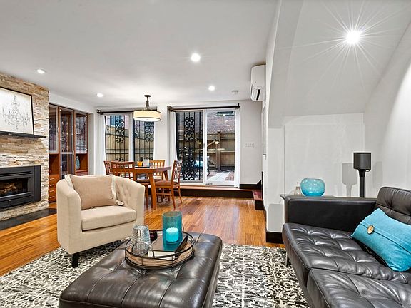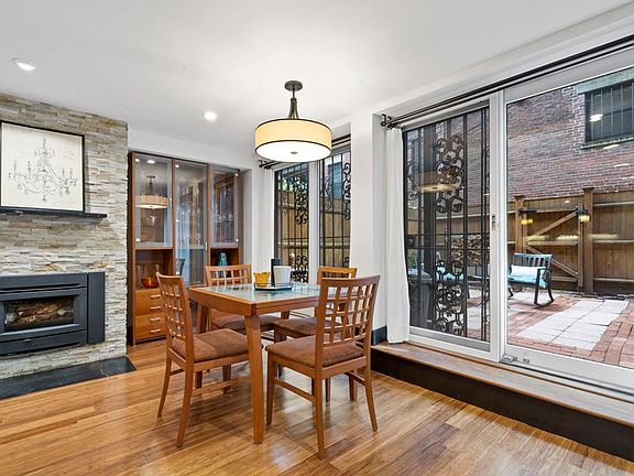 Lovely street level entrance to this beautiful 2 bedroom, 2.5 bath parlor duplex in top location. Two large bedrooms offer generous custom closets including master with high quality built-ins and en suite with custom walk-in shower. Wide open lower level with bamboo floors and spacious living/dining area with wood burning fireplace and recessed lighting. Soapstone and stainless steel kitchen features induction range, tile backsplash, under cabinet lighting, large custom pantry and convenient granite breakfast bar. Wall of glass frames sliding doors leading to huge bricked garden patio. Extra basement storage space. A wonderful home steps to convenient transportation and all the top restaurants and boutiques of the South End and Back Bay.