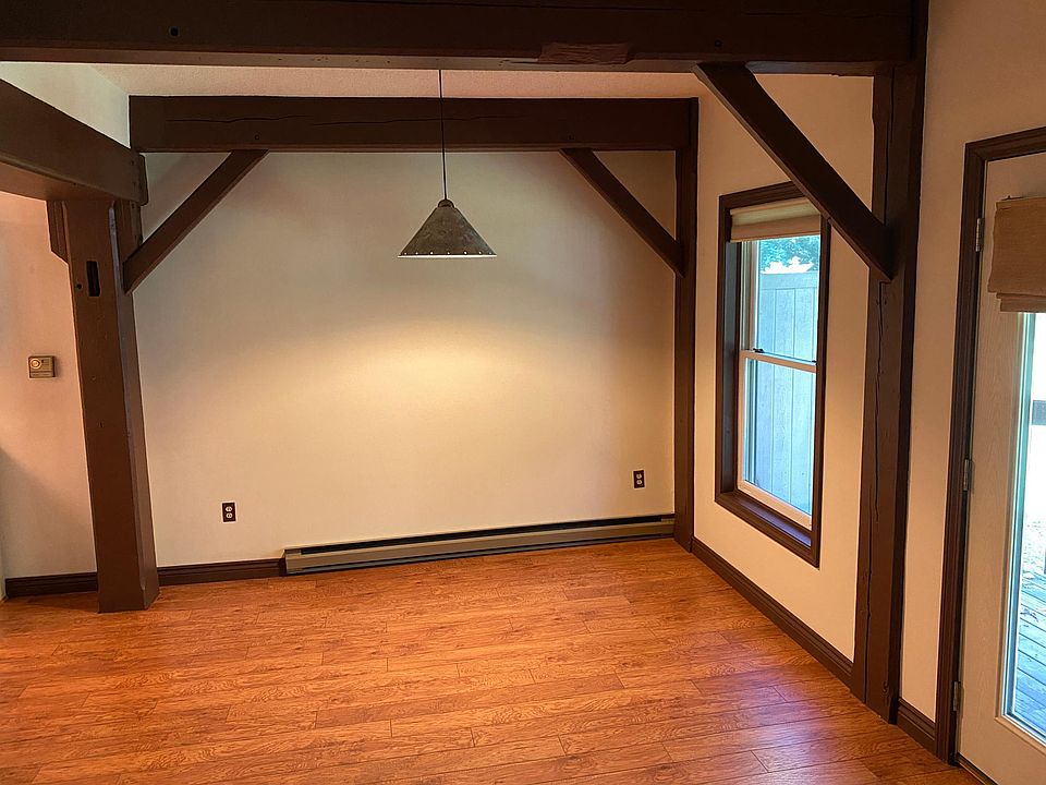 Easily walk to Smith College and Northampton center from this cute and cozy one bedroom/one bath apartment with new bathtub/shower, in-unit washer/dryer, and dishwasher. Quiet, primarily owner-occupied apartment building is tucked away at the end of Clark Ave, with immediate walking path access to Veterans Field Park and the Manhan Rail Trail (which can also be seen from the private back porch). The apartment is currently occupied, so I'll schedule in-person showings between June 18-27 for an August 1 move-in. I've tried to provide an accurate description and photos, so I'll accept and screen select applications before showings, but I prefer to meet in person prior to offering the apartment to a specific tenant. Please note: The displayed bathroom photos contain the current tenant's possessions. I installed a new bathtub immediately before they moved in, so I don't have any "unfurnished" photos of the bathroom. Water, washer/dryer, trash/recycling, snow removal and mowing/landscaping all included. I prefer no pets, but a cat is possible for the right tenant. Two off-street parking spots are included in a large, uncrowded lot. Tenant pays for electric (including heat, which admittedly isn't cheap in the middle of winter) and cable (if desired). I'm an individual landlord, so I do not charge an application fee beyond Zillow's (which I believe is $35 and valid for a month for additional applications). Three references will be requested of final applicants.