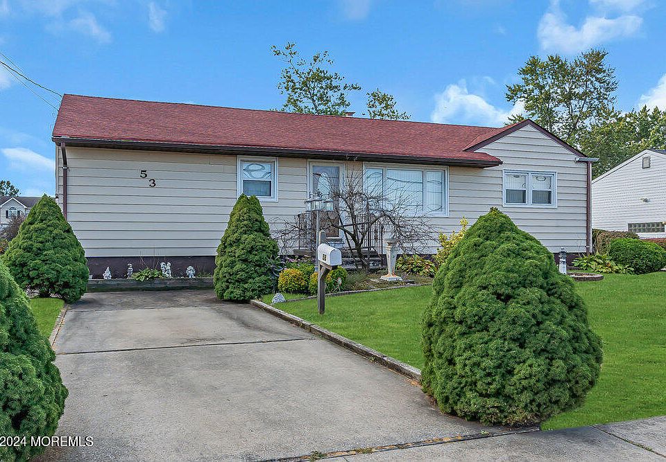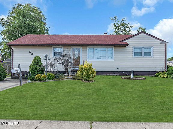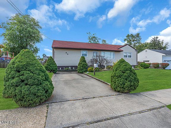 Adorable 4 Bed 1.5 Bath Ranch located in Hazlet, NJ. Incredible location! Located less than 5 mins for Garden State Parkway North/South which is perfect for commuters and less than 15 mins from local beaches. Features include: 1262 SF, Full Finished Basement, Roof is only 10 years old, Open Floorplan layout, Newer Hardwood Flooring throughout most of the home, Living Room/Dining Room boasts a vaulted Beam Ceiling w/a decorative Fireplace Mantle for the center of the room. Huge Eat-in Kitchen w/Solid Wood Cabinets. Owner's Suite has Hardwood Flooring and attached full bath. Property is beautifully landscaped and is conveniently located to shopping and restaurants. Don't miss out on this GEM!