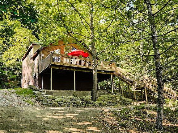 Very cute cabin holds lots of character inside! Exposed beams, wood burning fireplace and loft room make the living and kitchen area feel both cozy and spacious. Two bedrooms and bath are on main floor, with a bedroom, loft room and bath up. Home is in a wooded setting on two lots for elbow room. Enjoy the privacy and wildlife from the generous deck. This jewel is priced right, and most furnishings convey with an acceptable offer.