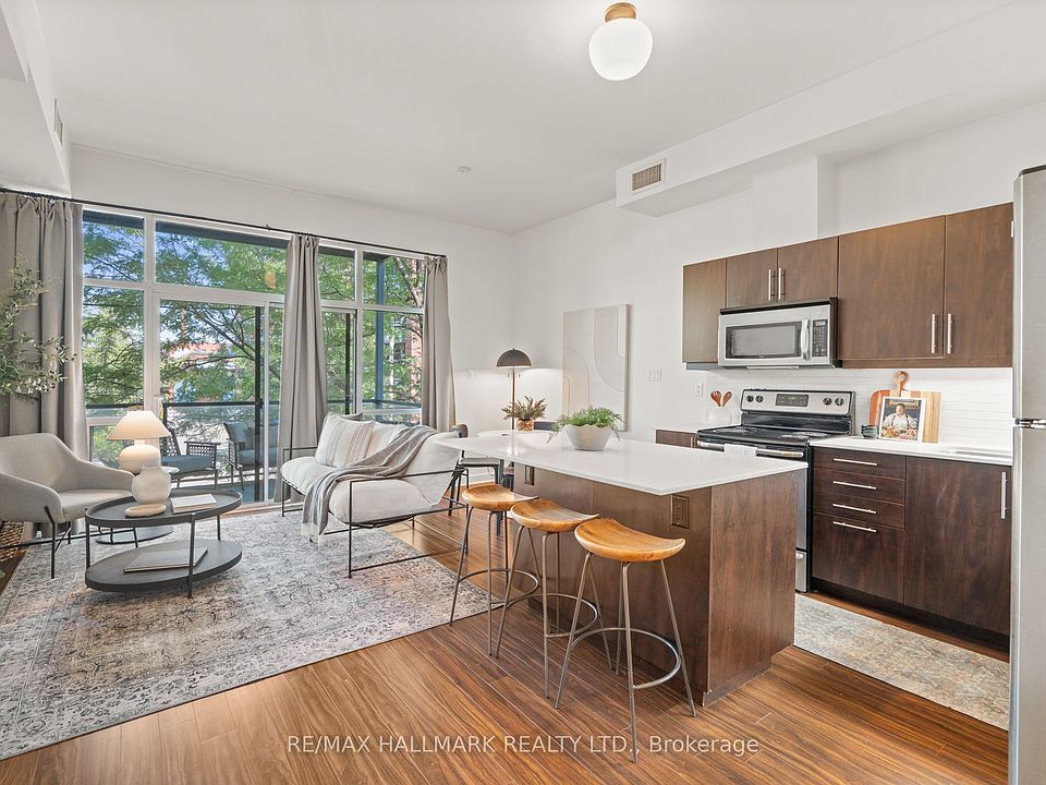 Feels Like a Home ..A House-Like Condo with Style & Space at 53 Colgate #201. This bright and spacious 2-bedroom, 2-bathroom residence truly feels like a home, offering the comfort and scale you want without the hassle of lawn care or snow shoveling. Facing a peaceful park on a quiet street, it blends tranquility with the unbeatable convenience of Leslieville living.Inside, modern upgrades set it apart: 10-foot ceilings (a rare find!), sleek quartz countertops, stainless steel appliances, updated pendant lighting, and a custom designer centre island with abundant storage. Two full bathrooms and a smart, open layout make it perfect for both daily living and entertaining, while oversized windows flood the space with natural light.Step onto your private balcony (yes, you can BBQ!) or enjoy the vibrant neighborhood at your doorstep local grocers, cafés, restaurants, and boutique shops all within walking distance. With visitor parking available and TTC access just minutes away, hosting and commuting are effortless.With recent rate cuts, this hidden gem delivers exceptional value in one of Torontos most sought after communities. *** Street Parking Permit Is Paid For One Year *** 53colgateaveunit201.com/unbranded for more information. *******Highlights********* - Rare 10-foot ceilings and oversized windows with abundant natural light- Spacious 2 bedrooms + 2 full bathrooms ideal for families, roommates, or a home office. Modern chefs kitchen with sleek quartz countertops, stainless steel appliances, custom centre island with storage, and designer lighting- Open-concept living/dining with updated finishes and a walk-out balcony- Visitor parking for your guests. While parking in Leslieville is rare, this unit comes with a paid city parking permit, giving you reliable access to nearby parking without the stress- Pet-friendly building facing a park, steps to cafés, shops, and transit- Prime Leslieville location with a true community feel.