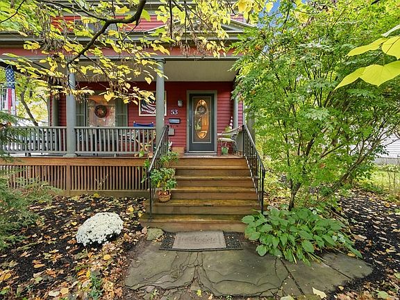 Classic Clinton Village charmer! Often admired, 53 College Street is ready to welcome it's next owner! This home is easily identifiable by the dramatic Redbud tree in it's front yard, which adds a level of beauty and privacy to the inviting front porch. Set on a super deep, private and well landscaped lot, this home has been thoughtfully updated and and lovingly maintained. Inside you'll love the historical details (those bookcases!!) while appreciating the modern and creative updates to the floor plan. The kitchen and breakfast room are open- a perfect spot for conversations over meals or while cooking (foodies will love the second prep sink) and it overlooks the tranquil setting. In addition to the first floor living, dining and office spaces, the second floor den offers a comfortable area to relax, while the finished 3rd floor playroom adds a versatile spot for fun or creativity. The home features 3 bedrooms including the primary bedroom with its dressing area and office nook. Check the photos and the floor plans, then contact your favorite Realtor quickly- this village gem won't be on the market for long!