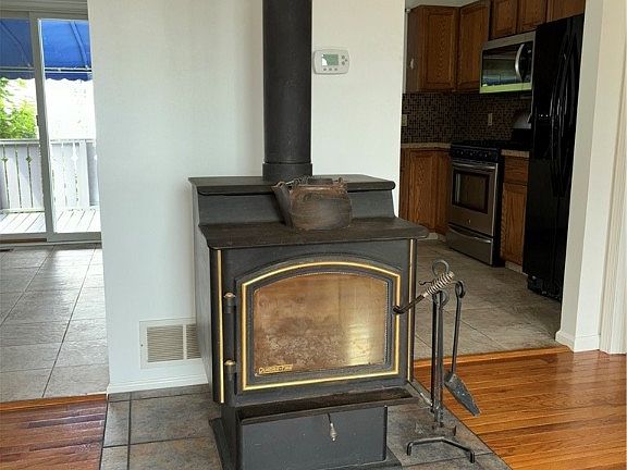 Just Listed & Ready to Move Right in! Gleaming Hardwood Floor & Vaulted Ceiling invite you into the Spacious Living Room which Features a Wood-Burning Stove for those cold winter nights to come! The Vaulted Ceiling continues into the Eat-In Kitchen which is fully equipped with all of your Appliances (Refrigerator w/Water & Ice maker built in, Gas Stove/Oven, Microwave and Dishwasher); Family Room (2nd Living Space) is on Lower Level where the Laundry Room is also Located (Washer & Dryer included and no going down into the Basement to do your Laundry!). The Dry Bar & Pool Table in the basement shall remain with the Property. Plenty of Shelves to store your things also; The Fully Fenced Backyard is an Entertainment Delight! The Multi-tiered Deck has Plenty of Space for Everyone! Swimming Pool includes a Volleyball net for the Sports Enthusiasts! Enjoy the Fire Pit in the evenings; Come check it out before it's gone! Open House on Sunday 1:00-3:00. Delayed Negotiations until Tuesday 7/2/24 @ 12 noon. Square footage per blue prints from Builder (Seller has)