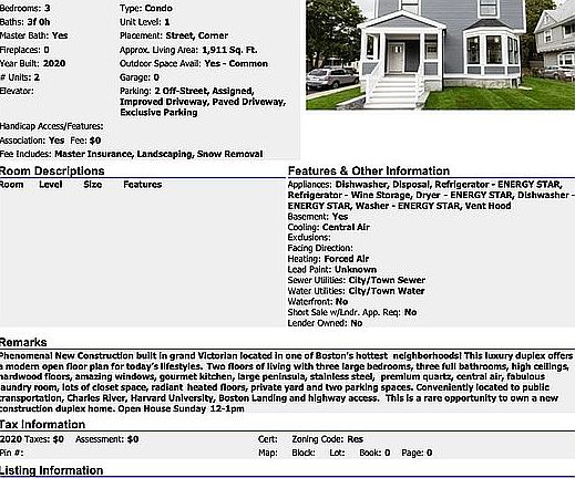 Phenomenal New Construction two family home built in grand Victorian located in one of Boston's hottest neighborhoods! Offering two luxury duplex units with a modern open floor plan for today's lifestyles. Each unit offers two floors of living with large bedrooms, three full bathrooms, high ceilings, hardwood floors, amazing windows, gourmet kitchen, large peninsula, stainless steel, premium quartz, central air, fabulous laundry room, lots of closet space, radiant heated floors, private yard, electric car charging station ready and two parking spaces for each unit. Conveniently located to public transportation, Charles River, Harvard University, Boston Landing and highway access. This is a rare opportunity to own a new construction home. Open House Saturday 11-12noon