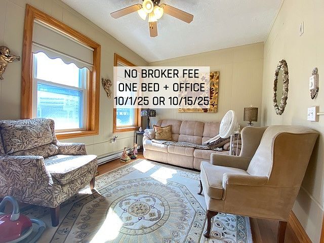 NO BROKER FEE Corner Building w Eight Windows Bright & Sunny Floor Through Unit North End One Bed + Office Hardwood Floors Throughout Open Concept Living/ Kitchen Ample Cabinets & Granite Counters Updated Bathroom w Tub/ Shower Ceiling Fans in Every Room (No Dishwasher No Laundry) ~Reach Out For Video Walk-Through~ Upfront Cost (First/Security)