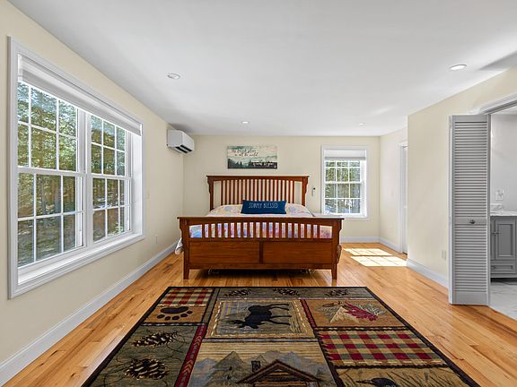 2 car garage, screened in porch, three bedrooms plus an office, heat pumps for efficient heating and cooling. A large and private primary suite above the garage offers views of the river and lots of space. Two full baths and one half bathroom are supported by a three bedroom septic that was installed recently in 2019. Updated appliances and hardwood floors can be found throughout the home. The home is equipped with underground power and a generator hookup to keep power outages infrequent. Sitting on just over 2 acres you'll have plenty of space for activities of all types. The large shed, chicken coop and greenhouse offer outbuildings galore for outdoor hobbies. The daylight basement faces the river and is full of potential. Whether you like grilling on the porch, exploring the nearby trails and ponds, or entertaining in the large living and dining rooms this property has a lot to offer. Conveniently located an easy drive to Brunswick, Portland and Lewiston Auburn. Book your appointment today to see what life might be like for you at 53 Cottage Woods Road.