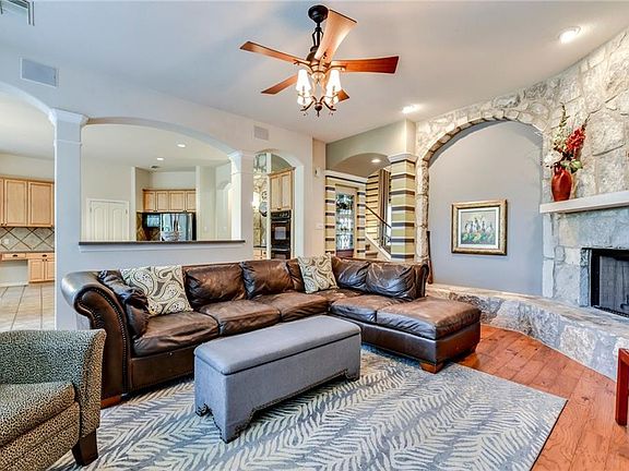 Hills of Lakeway home located on tree filled corner lot. The Hills is a gated community nestled between 2 signature Nicklaus Golf Courses, Park, and World of Tennis Sports Complex. Owner commissioned HGTV's Interior designer Thom Filicia to design dining & entry spaces. Filicia created stunning modern spaces, yet retained classic interiors with an inviting aesthetic feel for Resort Hill Country living. Open/bright kitchen and living. Guest bedroom on main level. Super location close to shopping & schools.