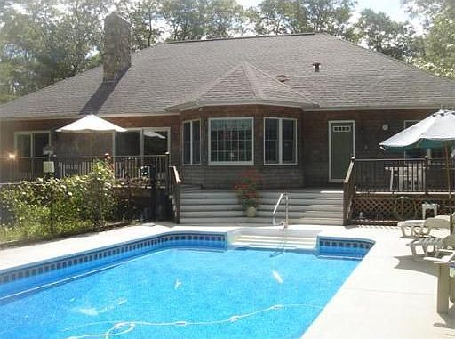 Florida style ranch for the discriminating buyer, beautifully appointed open floor plan, radiant floors, central air,exquisite master suite with french doors to back deck attached to the inground pool, private office, granite kitchen with stainless steel appliances, breakfast nook and formal dining room, stone fireplace, 2 bedrooms and full bath with door leading off pool on one end of home with the master on the other, full basement with fhw heat ready to be finished, 2 car garage, set back 400' off road on a private lane,built in 2003, it's truly a custom home