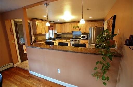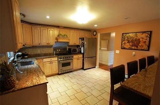 Be very quick on this stunning & extensively renovated Ranch Style home with full finished lower level!! 10 total rooms, 3+ bedrooms, 2 full baths. Gorgeous high end kitchen has SS appliances, granite, recessed lights, breakfast bar, tile floor and backsplash, large dining room, big living room with fireplace, 3 generous bedrooms, full bath and enclosed 3 season porch complete the first level. Lower level has flexible floor plan for many uses: large room for study or office, huge family room, and room presently used as big bedroom or use as another family room, simply stunning high end bath with whirlpool style tub, separate shower, tile and huge vanity, and lastly a utility room with state of art 5 zone heating system. Hardwood floors in all main rooms on 1st level, rear deck, 1 car garage, 4 car parking, central air on both levels, big fenced enclosed yard, paver patio, and so much more!! Not a home to miss. Great location! Be real fast!!