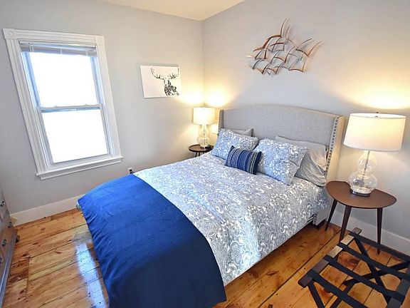 Available May 1st. (One year lease) Sun-soaked, 3-bedroom apartment ready for May 1st. move-in located in the thriving Thompson's Point neighborhood near downtown Portland. 1,100 sqft of recently renovated living space features original pine hardwood floors throughout the bedrooms and living room, period details such as built-in cabinets, and updated bathroom. High ceilings give this apartment an airy, spacious feel. Huge walk in closet in the front bedroom. Dedicated, new washer / dryer in basement. Expansive eat-in kitchen features new stainless appliances, including a high-end gas stove and oven, and under-cabinet lighting. Energy-efficient natural gas heat. Spacious shared back yard with gas grill and picnic table. 2 Tandem off street parking for 2 vehicles and bountiful on-street parking around the house with snow ban lot directly behind the house (you'll never be searching for parking!) Apartment is adjacent to Douglass Field, an expansive public park offering soccer, baseball, and basketball fields, a pool, playground, community gardens, and a great jogging course. 2 off street parking spaces. Utilities not included. Tenant pays gas and electric. No Smoking