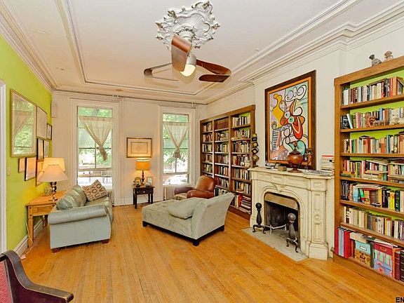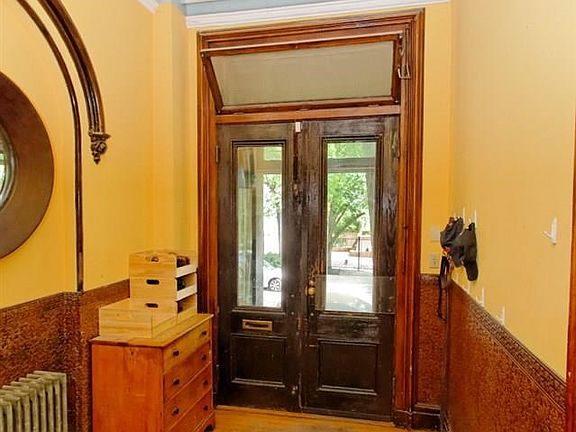 This grand Center Square Townhouse offers spacious rooms, HW flrs, & is nicely accented w/stained glass windows, crown molding, built-in shelves & original woodwork. 1st flr: Living rm, opens to dining rm, gourmet kitchen & an add'l room for lg office or bdrm. 2nd floor: 3 bdrms w/add'l family room for gathering. Basement level has a large apartment w/it's own entrance, full eat-in kitchen, living room, and bedroom. Easy walk to restaurants, enter't, shopping & more! 1st OPEN: 5/28, 12-2p