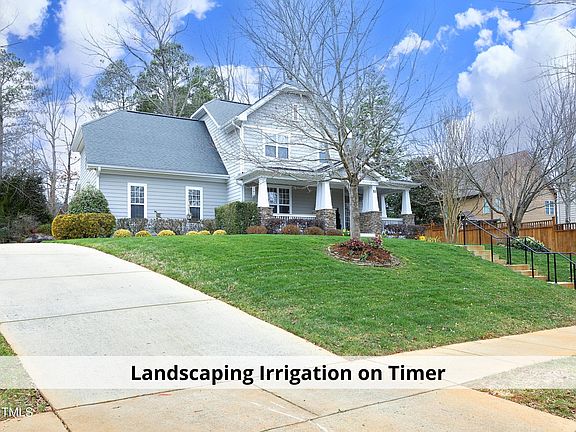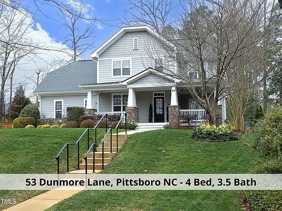 Powell Place gem in sought-after neighborhood. Move-in ready craftsman-style home with meticulous landscaping, shed, and timed lighting & irrigation. Enjoy the custom patio and deck with gas line for grill. Expansive front porch. Cozy up on the side porch 10' x 14' it feels like a room and features a ceiling fan with access from the living room. New exterior paint in 2020. Gas fireplace in a light filled living room with a beautiful view of backyard landscaping. Hardwood floors 1st floor. Kitchen boasts granite countertops, island, tile backsplash, base cabinets with pullout shelves, stainless steel appliances, gas range with hood that vents outside, reverse osmosis system at the kitchen sink & walk-in pantry. Permitted addition to the back of the home expanded the eating area off kitchen with vaulted ceiling, abundance of windows, can lighting, bump in for sideboard/cabinet, and laundry with many cabinets, granite countertops, tin backsplash, sink, bar to hang clothes. Upstairs features new carpet in 2018, a spacious primary suite with walk-in custom freedom rail closet & built-in drawers with window, attached primary bath has separate 2 sinks, an oversized tub and shower stall, two secondary bedrooms, a bonus (bed)room with ample storage, and hall bath with double sinks. Oversized attached 2 car garage 23' x 27' with workbench and cabinets. Whole house water filtration system 2021, attached oversized garage with exceptional storage, left side workbench & cabinets included. New water heater 2018. Neighborhood included; park, playground, pond. Only 7 mins to Downtown Pittsboro and ½ mile from Northern High School.