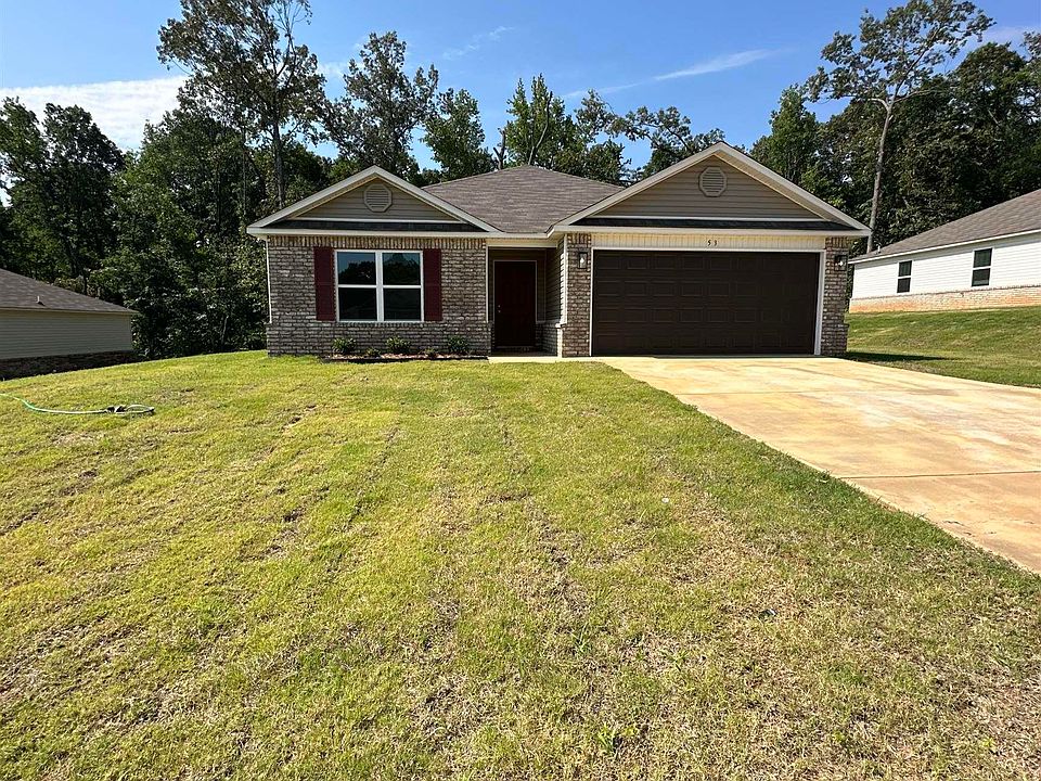 The Foster II Plan Upgrades in this home: brick wainscot, 60" fiberglass shower in Master Bath, toilet upgrade, plumbing faucet 2 upgrade, 8" deep Kitchen sink, door bell, added cable jack, Cheyenne style interior doors, level 1 cabinet hardware, Luxury Vinyl Plank in wet areas and Living Room and adjacent hallways, 5 shelf pantry upgrade, 5 shelf linen closet upgrade, can light above Kitchen bar, two exterior coach lights, stainless steel appliance package, top load washer & dryer.