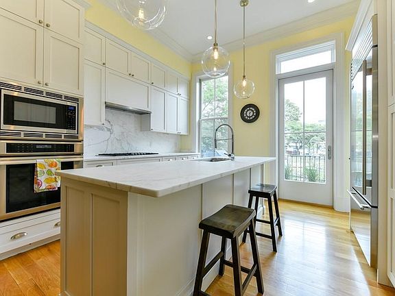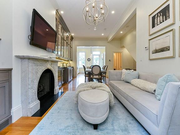 Premier "8" Streets location in the South End. Brand new renovation in 2013, Stunning 3BR/3.5BA triplex home with private outdoor space and deeded parking. This feels like a single family home. Entering on the parlor level you experience soaring ceiling height, crown molding and abundant natural light. Living room offers an original marble mantle w/gas fireplace. Custom built-ins off the dining area show off fine china and climate controlled wine storage for 300+ bottles. The gourmet chef's kitchen has marble counters, Thermador appliances, custom cabinets & enclosed pantry. This leads to a large deck off the living area, perfect for entertaining. Street level has two bedrooms including the master bedroom with his/her closets. En-suite bathroom has marble covering the floors, double vanity and shower. The garden level offers a media room/family room. Gas fireplace, storage and a 3rd bedroom suited with a bath. Central A/C & Laundry room. Direct access parking.