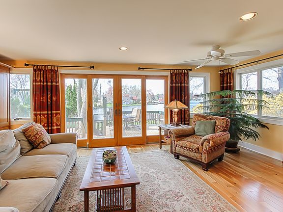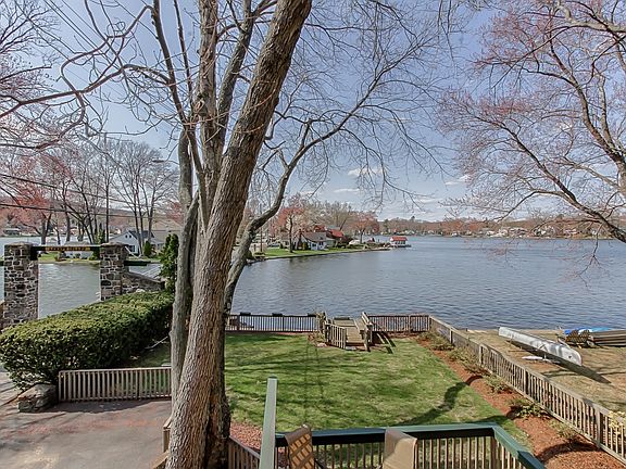 Newly renovated lakefront will charm you with old time rustic character & quality updates. Mint condition! Larger than it appears! Refurbished with its originality in mind. Exposed log is stunning! Interior focus, fieldstone fireplace creating a warm & cozy ambiance. Pleasing space to prep meals; w/ granite, top of the line cabinets & appliances. Enjoy your food in open dining area. Balanced by large living room, panoramic & unique views of lake, sunset, stonework & island bridge views. Deck, Dock, Balcony, Level Backyard offer 4 more spots to enjoy scenic surroundings. Versatile 4 bedroom/office layout. NEW hardwood flooring, lighting, kitchen, baths, deck, windows, doors, plumbing, electrical & structural work. Perfect spot to relax, boat & fish. Easy lake living. Minutes to mass transit, town, shopping. This lake house has been totally renovated. The investment has already been made, no work to do. Great Condition!!!!! Move right in.