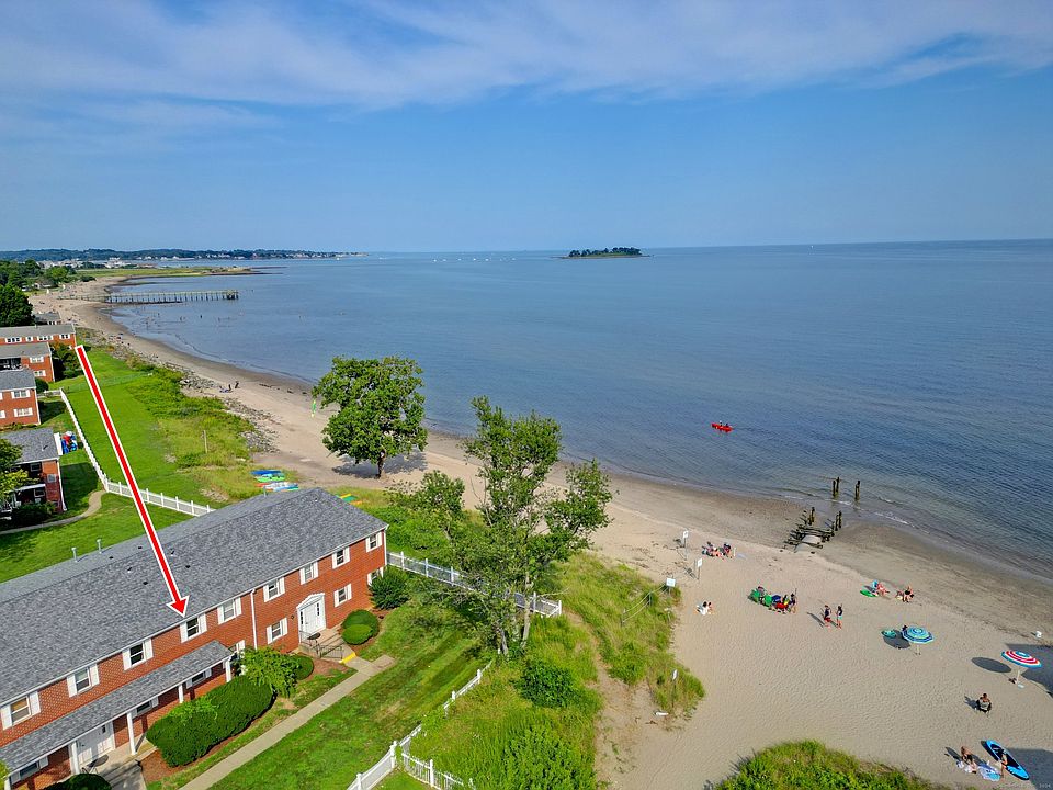 Heat/hot water, and a sandy private beach are included in this 1+ bedroom beachfront unit, with views up the coast of Walnut Beach, Silver Sands, and Charles island! This spacious feeling unit has been fully updated, and includes an office/guest room with flip up desks for extra flexibility. The kitchen features all quartz counters, dishwasher, beachy 2-tone cabinets, island with waterfall/seating, and a touchless smart faucet. The living room and deck are perfectly situated to take in the fabulous views, as is the bedroom overlooking the Naugatuck ave beach. This large bedroom also features a walk-through closet with custom closet system, flip up desk overlooking the beach, and French doors. The spa-like bathroom features a fully tiled walk-in rain shower with body jets, floating vanity, and touchless smart toilet with heated seat. Other features include assigned parking, basement storage area, a nest thermostat, smart switches/bulbs, smart fridge/washing machine, and Brazilian wood celling fans. The gated private sandy beach is only steps from the back door, and there is plenty to do in this vibrant, walkable beach community. Treat yourself to an all-year staycations from this lovely beach-front property! Agent/owner