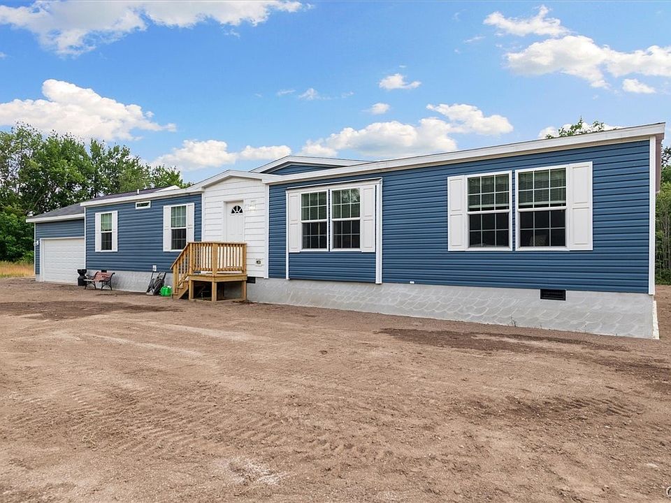 Located in the charming town of Hastings within the Central Square School District, this exceptional home sits on nearly a 1 acre wooded lot and offers everything you could possibly desire! The open-concept design features a spacious living room, kitchen, dining room, and family room, perfect for entertaining or large gatherings. The kitchen itself boasts a large island, plenty of cabinet and counter space, along with a hidden pantry that provides ample storage. The sliding glass door off the dining room brings the outdoors in, making Summer cookouts a breeze. The generously sized living room features a fabulous entertainment area. The owners bedroom is a true retreat, complete with a walk-in closet that seems to go on forever and an ensuite bathroom featuring a large walk-in shower and a linen closet. At the other end of the home, you'll find two more spacious bedrooms and a full bath. Conveniently located at the end of the home is a laundry room, offering easy access to the 2 car attached garage. Manufactured in 2022, this is a new home with nothing to do but move in and enjoy! This home is a must-see! Schedule a showing today!
