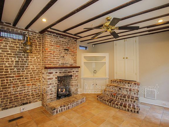 Charming 1 bed/1 bath carriage home available for rent in downtown Charleston. This two-story home was built in 1850 and features a large eat-in kitchen equipped with stainless steel appliances; a large living room with a fireplace with gas logs; and a courtyard with patio furniture and a grill included. Upstairs, you will find the spacious bedroom and bathroom. All utilities are included with this home (gas, electric, water, and internet). Grounds maintenance and A/C filters are provided by the landlord along with interior pest control. This property has an automated natural gas generator and water pressure booster pump. No undergraduates. No pets. Street parking. One year lease terms. Available Now! Non-Refundable Fees Applicable for Moving Forward: $75 Application Fee