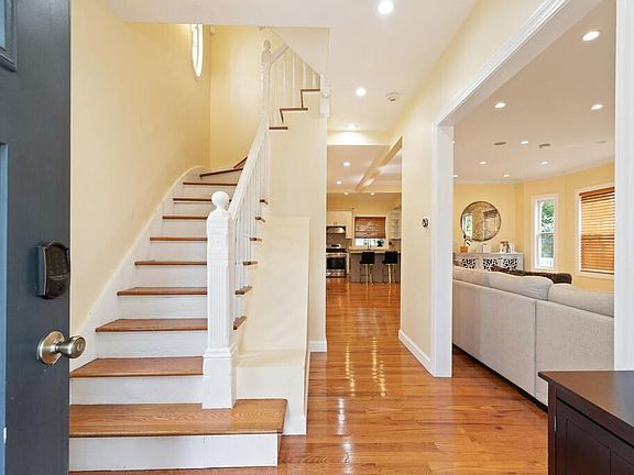 Welcome Home!!! 53 Elmont Street boasts an open-concept first floor with living-dining room and kitchen, featuring an 8-foot Island, 5-foot Bar, 52-Bottle Wine Fridge, 5x7.5-foot walk-in pantry, with lots of cabinet spaces featuring under cabinet lighting, and a half-bath to round out the first floor. Head on up to the 2nd floor to 3 bedrooms, full bath with rain-showerhead and laundry. The 3rd level boasts the 600sqft. primary suite, walk-in closet, and bathroom with rain forest showerhead, 6ft. soaker bathtub, and radiant heated floors. Some of the additional features of this fabulous home are gleaming hardwood flooring throughout, surround sound speakers, LED Lighting, Nest Thermostat, Ring Video Flood Light, 2 central air zones, and 3 electrical panels. This home has an easy indoor-outdoor flow, perfect for year round entertaining.