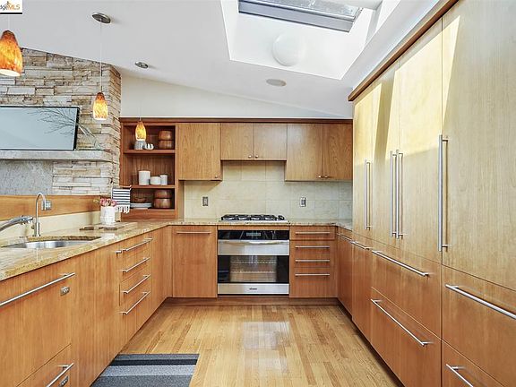 MAGICAL MIDCENTURY VIEW HOME \\ Designed by esteemed local architect John Rolf Hattam, this mid-century marvel embraces you when you walk through the door. The uniqueness of this home lies in its ability to be both intimate and expansive. You are greeted by a main floor living area that's open and spacious, with vaulted ceilings and a glass panorama that showcases the view of the city and Golden Gate Bridge. It beckons you out onto the generous deck, the perfect place to enjoy drinks and incredible East Bay sunsets. At once dramatic and serene, this magical midcentury home, set among its lush surroundings, captures light and frames the views ever so artfully while maintaining the architectural essence of the era. Built in 1964, this 4-bedroom, 3-bathroom, 2,074sf home features warm wood finishes, high vaulted ceilings, and walls of windows, which are on full display as soon as you enter. Minutes to Tilden and the Gourmet Ghetto.