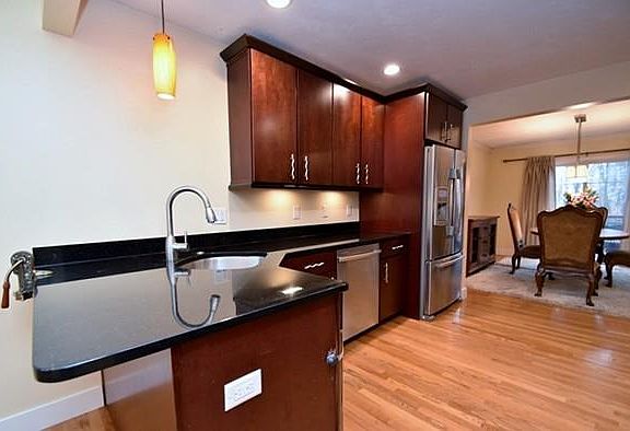 Move in Ready! Pristine End Unit Townhome located in beautiful Flint Pond Estates! Walk inside to this custom updated kitchen featuring granite countertops w/ breakfast bar & dining area, ample cabinet space w/ under cabinet lighting, recessed lighting & SS appliances! Formal dining room is a great place to entertain & offers sliders out to the deck & open floor plan leading you into the living room. Sun filled living room boasts gleaming HW Flrs, fireplace, cathedral ceilings w/ skylights & ceiling fan! Master Suite includes walk-in closet, skylights & gorgeous updated master bath complete w/ stone tiled shower, Jacuzzi tub & dual sink granite countertop vanity! Level 2 complete w/ 2 additional spacious bedrooms along w/ loft area featuring rod Iron spindles on staircase overlooking the living room! Family Room in lower level offering plush W2W carpets, recessed lights w/ walkout to the covered patio & additional storage room! New Water Heater, Central A/C, 2 Car Garage! See it today!