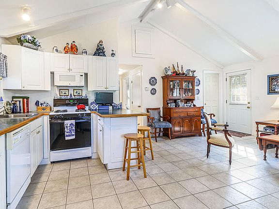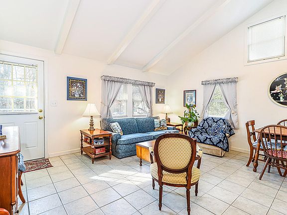 This delightful two-bedroom home presents an exceptional opportunity for a range of buyers, including first-time homeowners or downsizers. Upon entering, you're welcomed into an expansive open space that combines the living, dining, and kitchen areas. The cathedral ceiling enhances the sense of openness and light, making it an ideal space for entertaining or simply relaxing. Adjacent to the kitchen is a private deck featuring a pergola. This outdoor area is perfect for enjoying a cup of tea or evening relaxation in a quiet space. The home has 2 bedrooms and a bathroom on the 1st floor. The basement has a flexible bonus space that can serve a multitude of purposes according to your needs. This added space has a second bathroom, enhancing the home's functionality. Detached garage space offers secure parking or additional storage. Gas heat. The property has a passing Title V. Close to conservation land as well as a public golf course.
