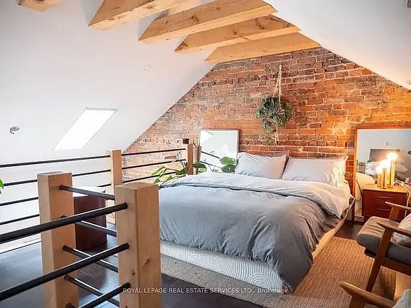 Loft Style Upper Unit In Trendy Queen West. This Spacious Layout Across The 2nd/3rd Floors Features 2 Bedrooms & 1 Bathroom. Updated Interior Including A Modern Open Concept Kitchen WS/S Appliances & Beautiful Exposed Brick. Large Living Area With High Ceilings, Double Windows & 2 Skylights. Open Dining Area With Spiral Staircase Leading Up To Primary Bedroom + Ensuite Laundry. 1 Private Garage Parking Spot Included With Additional Storage Space. Steps To Queen St, Public Transit, Grocery Stores, Parks, Rec Centres & Much More.