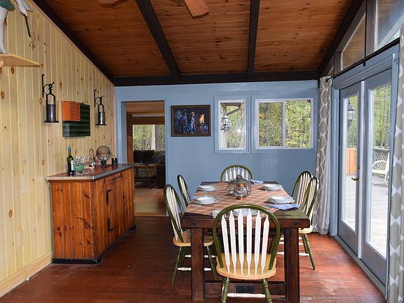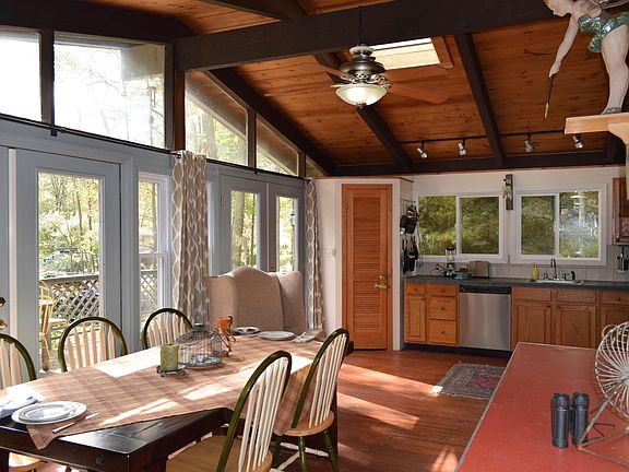 Lake view at upscale Lake Hauto! This true mountain Chalet is delightful! Enjoy one level living in this lovingly maintained, 3 bedroom, 2 bath home. You will be wowed by the open concept layout boasting original hemlock plank hardwood flooring! Cathedral ceilings are adorned with warm tongue & groove wood accents. Lots of glass allows the natural light to peek in making the house cheery even on overcast days! Kitchen includes Stainless appliances. Spacious living-room is a newer addition w/doors that open to an extensive deck for entertaining many guests! Backyard is level & accesses an attached shed to store all of your toys! Nestled in on a nice parcel & set back from the road the house is right across from the lake. Only 1 block to Crescent Beach, tennis courts, ball-field! New roof!