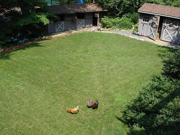 Large contemporary house with many windows overlooking heavily forested area with riding and walking trails. Cedar siding, no paint, low maintenance. Beautiful yard with tennis court, hot tub, horse paddock and out buildings. Two fireplaces, large kitchen with sliders leading onto large deck. Many amenities; property and interior of house protected by video and other security systems. Neighborhood Description Excellent school system